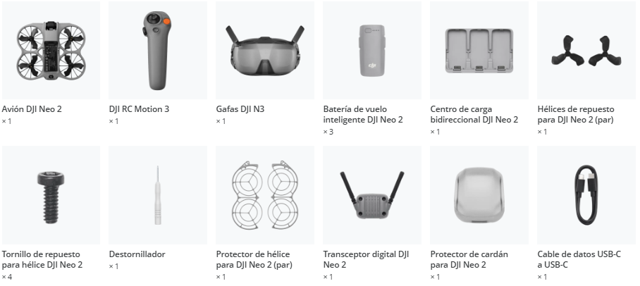 • Incluye el dron, RC Motion, DJI Goggles N3, transceptor digital, 3 baterías de 18 minutos, un centro de carga y protectores de hélices para facilitar el vuelo FPV.