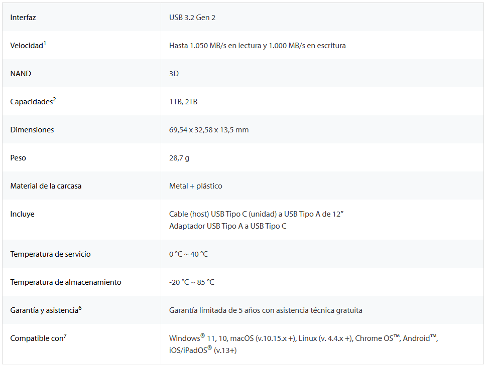 El SSD externo XS1000 de Kingston es una solución para disponer de copias de seguridad de archivos bastante práctica. Por su estilizado y compacto factor de forma, ha sido diseñado para encajar perfectamente en su estilo de vida, permitiéndole llevarlo consigo con facilidad. No deje que el tamaño le engañe: esta minúscula y potente unidad alcanza velocidades de hasta 1.050 MB/s1, y capacidades de hasta 2 TB2, ofreciendo suficiente velocidad y espacio para guardar sus valiosos datos. Compatible con dispositivos USB Tipo-C®3 USB y Tipo-A y con el adaptador y el cable incluidos4 para ofrecer una comodidad inigualable y una impresionante capacidad de almacenamiento, XS1000 es la solución más eficiente para realizar copias de seguridad de archivos sin complicaciones. Con él siempre podrá acceder a todos los documentos importantes, los recuerdos más preciados y los archivos multimedia. Despídase de la complejidad y dé la bienvenida a lo más avanzado en eficiencias de almacenamiento con el disco SSD externo XS1000. Disponible en negro o rojo. Las fundas de goma opcionales se venden por separado.