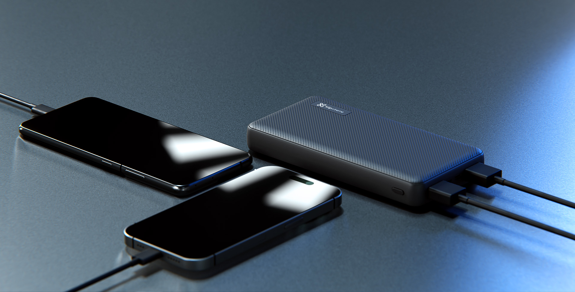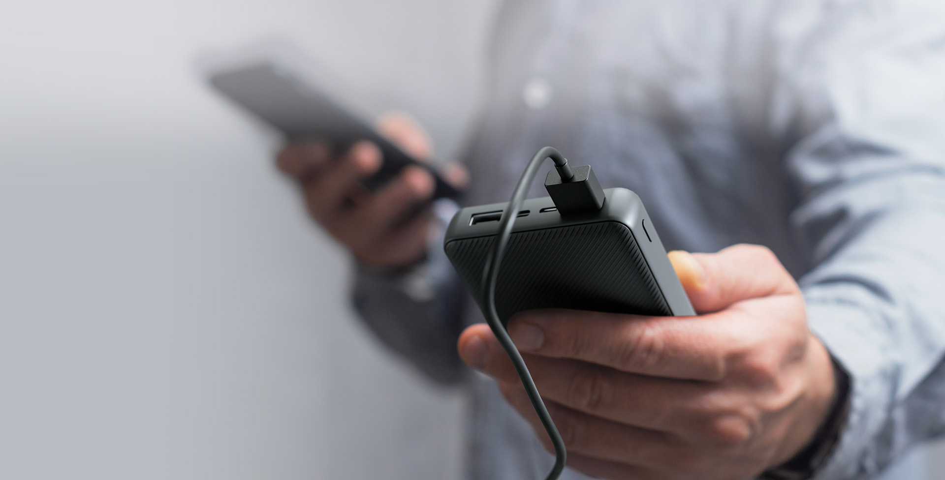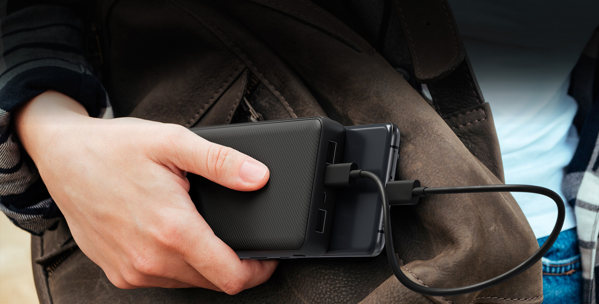 Con un puerto USB-C® bidireccional y un puerto USB-A puedes cargar tres dispositivos al mismo tiempo, así que ¡mantén tu teléfono y tus audífonos listos para cualquier ocasión! También puedes compartir los puertos y convertirte en el héroe de tus viajes, sesiones de estudio o aventuras nocturnas.